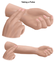 • Using the first and second fingertips, press firmly but gently on the arteries until you feel a pulse. Don't use your thumb to feel for the pulse.